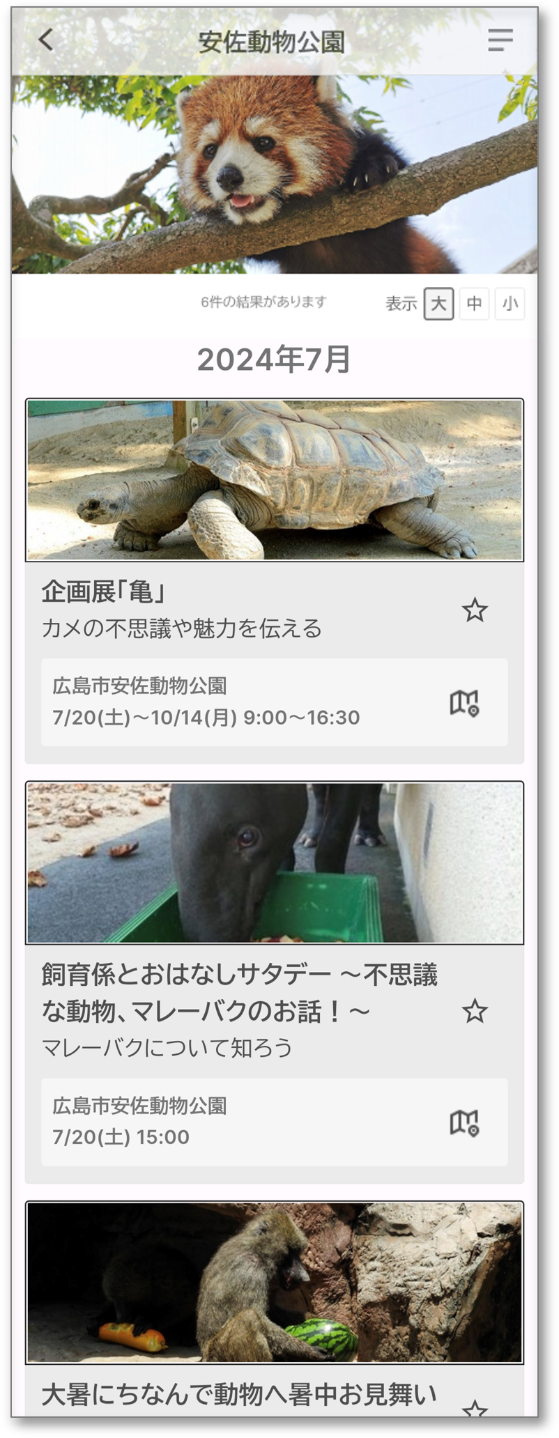 - スマートフォンからも操作しやすく、画面を上下に動かすだけでイベント概要が見られる設計。